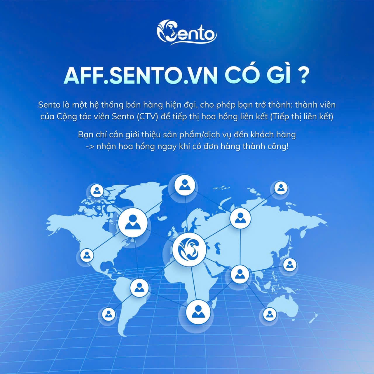 ✅ Khi tham gia aff.sento.vn, nhà sản xuất sẽ được hàng ngàn CTV (cộng tác viên) và đối tác bán hàng quảng bá sản phẩm rộng rãi.